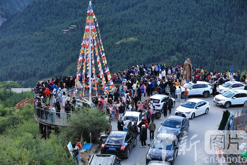 8月19日,游客在扎尕那景區(qū)仙女灘游玩。扎尕那景區(qū)位于甘肅省甘南藏族自治州迭部縣益哇鎮(zhèn),藏語意為“石匣子”,整個景區(qū)平均海拔在3000米以上,四周群山環(huán)抱,山頂云霧繚繞,森林、草原、青稞梯田與獨特的人文景觀互補整合,藏式民居點綴其間,吸引游客前來參觀游玩。中新社發(fā) 陳永剛 攝
