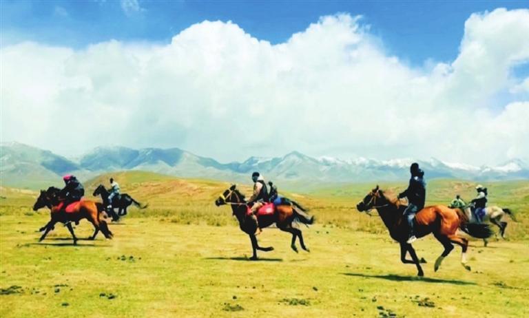 幾百匹賽馬組成的馬隊表演方陣,像團團移動的彩云貼地而來,馬兒昂首蒼穹,嘯嘯歡鳴,圍觀的人群發(fā)出陣陣歡呼,這是草原人對馬的情感最熱烈的釋放。