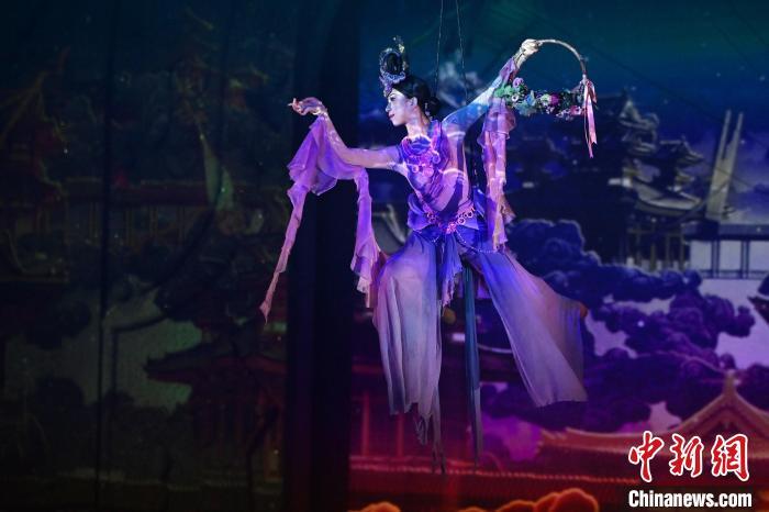 圖為演員在大型洞窟式沉浸體驗(yàn)劇《樂(lè)動(dòng)敦煌》中表演。九美旦增 攝