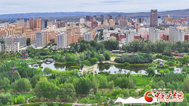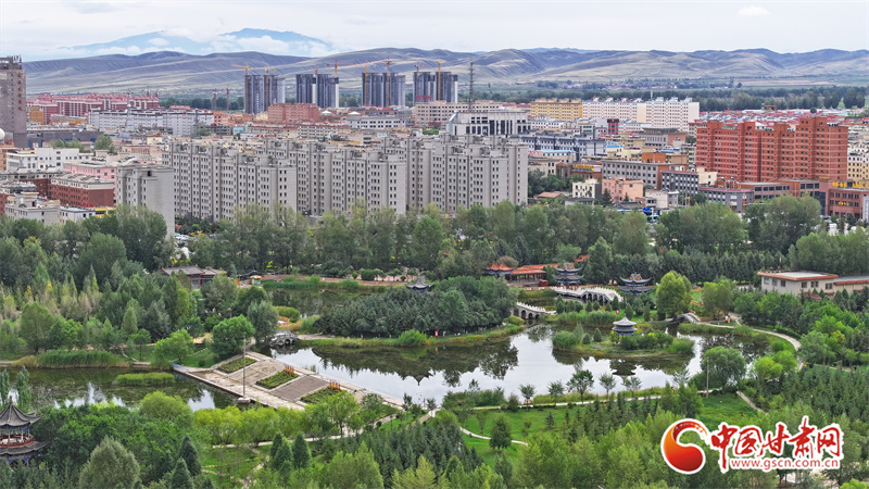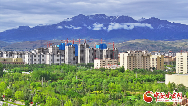 9月5日,雨過天晴的張掖民樂縣,城市清新如洗、生機盎然。云霧繚繞的山巒與高樓、民居、綠植相映成趣,繪出一幅如詩如畫的生態(tài)圖景。