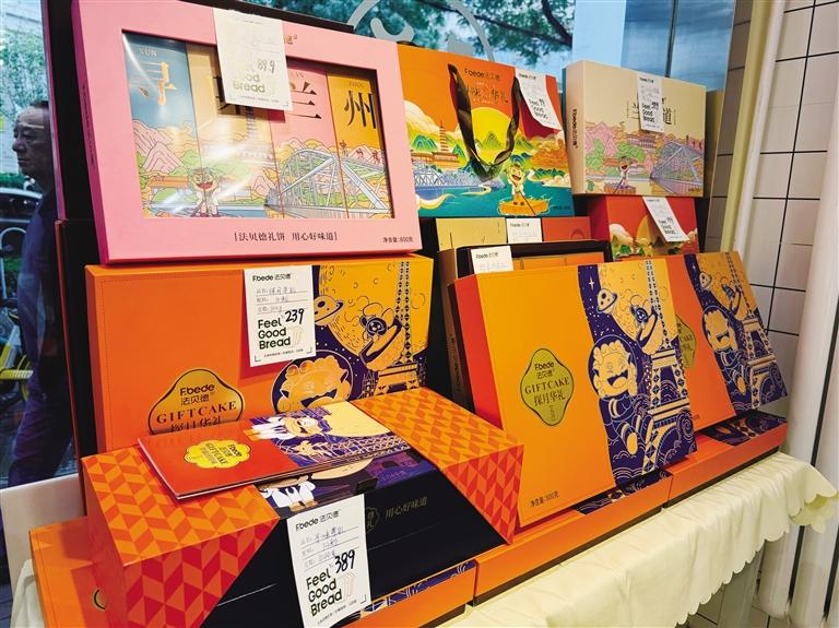 “尋味蘭州,再拿七盒。”9月11日,記者在法貝德平涼路店看到,店里的月餅銷售正熱,工作人員正在緊張出單中。櫥窗里擺放的“尋味蘭州”“蘭州味道”兩款月餅禮盒引人注意,從設計表面來看,以漫畫筆法設計的中山橋、白塔山、羊皮筏子等蘭州元素在月餅包裝盒上呈現(xiàn)。口味上,百合銀耳、芝香八寶、苦水玫瑰荔枝……蘭州味道十足。價格上也親民,“蘭州味道”6粒,59.9元;“尋味蘭州”8粒,89.9元。