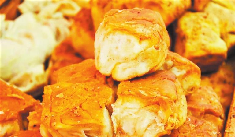 況且,一碗手搟粉里,如果啃上一個(gè)底和邊烤得脆脆的豬油盒子,手搟粉麻辣鮮香的料汁可以為豬油盒子的味道錦上添花,同時(shí)脆的口感又能與充滿韌性的手搟粉相得益彰,珠聯(lián)璧合。