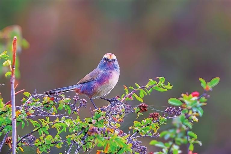 金秋時(shí)節(jié),祁連山秋風(fēng)浸染,活潑可愛的花彩雀鶯歡唱枝頭,在花叢中覓食,在清澈的溪邊嬉戲?;ú嗜跟L是一種毛茸茸偏紫色的雀鶯,種群數(shù)量穩(wěn)定,因此被評價(jià)為無生存危機(jī)的物種。 奔流新聞·蘭州晨報(bào)通訊員 華亮 焦方寧 攝