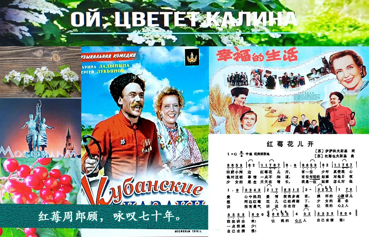 6、悠悠老歌箋:悠悠:長久、遙遠。語出《詩經(jīng)·鄭風·子衿》:“青青子衿,悠悠我心。”老歌箋:指在我國翻譯并傳唱至今的蘇聯(lián)電影《幸福的生活》插曲《紅莓花兒開》。