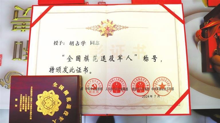 今年8月,胡占學被人力資源和社會保障部、中共中央組織部、退役軍人事務部、中央軍委政治工作部等軍地相關部門聯(lián)合授予“全國模范退役軍人”榮譽稱號,這是對退役軍人的最高榮譽和最大褒獎。