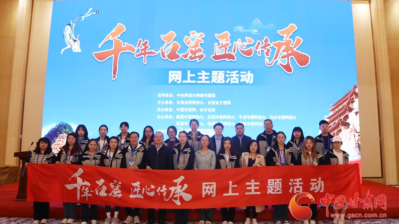 “千年石窟 匠心傳承”網(wǎng)上主題活動(dòng)由中央網(wǎng)信辦網(wǎng)絡(luò)傳播局指導(dǎo),甘肅省委網(wǎng)信辦、甘肅省文物局主辦,中國(guó)甘肅網(wǎng)、快手甘肅承辦,臨夏州委網(wǎng)信辦、慶陽市委網(wǎng)信辦、平?jīng)鍪形W(wǎng)信辦、天水市委網(wǎng)信辦、武威市委網(wǎng)信辦、張掖市委網(wǎng)信辦、酒泉市委網(wǎng)信辦協(xié)辦,中國(guó)互聯(lián)網(wǎng)發(fā)展基金會(huì)、中國(guó)敦煌石窟保護(hù)研究基金會(huì)、甘肅銀行支持,旨在深入貫徹落實(shí)習(xí)近平文化思想,勇?lián)聲r(shí)代文化使命,讓人們?cè)?ldquo;活”起來的石窟藝術(shù)中體會(huì)文化力量,不斷筑牢文化自信根基。
