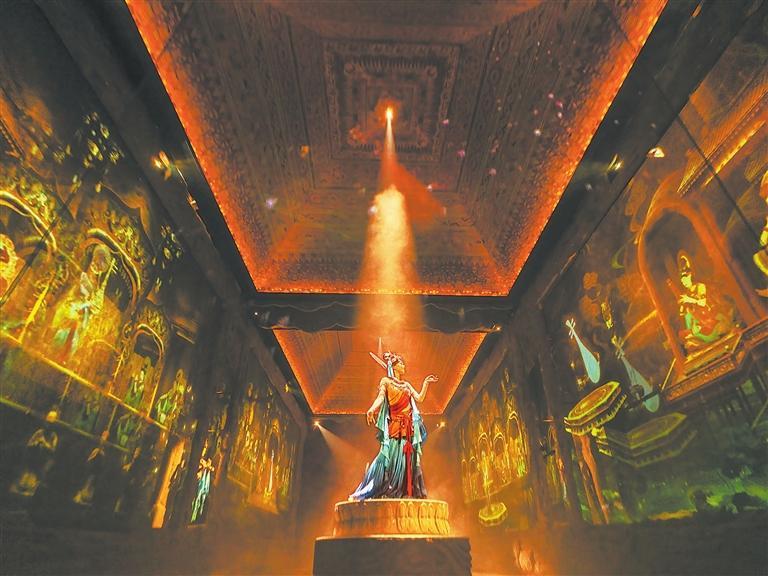 近年來,敦煌借助豐厚的旅游文化資源快速出圈,旅游項(xiàng)目供給不斷豐富,游客多樣化、高品質(zhì)的旅游需求不斷被滿足。其中《樂動(dòng)敦煌》作為全球首部洞窟式沉浸體驗(yàn)劇,自開演以來好評(píng)如潮。該劇在文化書寫、空間營造、科技賦能、審美引領(lǐng)、研學(xué)實(shí)訓(xùn)等方面逐步拓展旅游演藝新邊界。