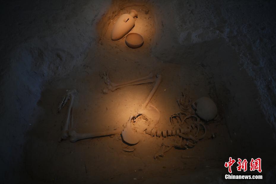 ?。保霸拢玻踩?,2024青年漢學(xué)家研修計(jì)劃甘肅班團(tuán)隊(duì)22個(gè)國(guó)家的青年漢學(xué)家,走進(jìn)甘肅省天水市秦安縣大地灣遺址參觀并進(jìn)行專(zhuān)題研修。大地灣遺址是新石器時(shí)代大型聚落遺址,出土了中國(guó)乃至世界上最早的彩陶文化、最早的文字符號(hào)、種植生產(chǎn)了中國(guó)第一批糧食品種黍、出現(xiàn)了最早的宮殿式建筑、發(fā)明了世界最早的水泥地面、創(chuàng)造了最早的繪畫(huà)作品——F411地畫(huà)。圖為大地灣博物館墓葬701。中新社記者 李亞龍 攝