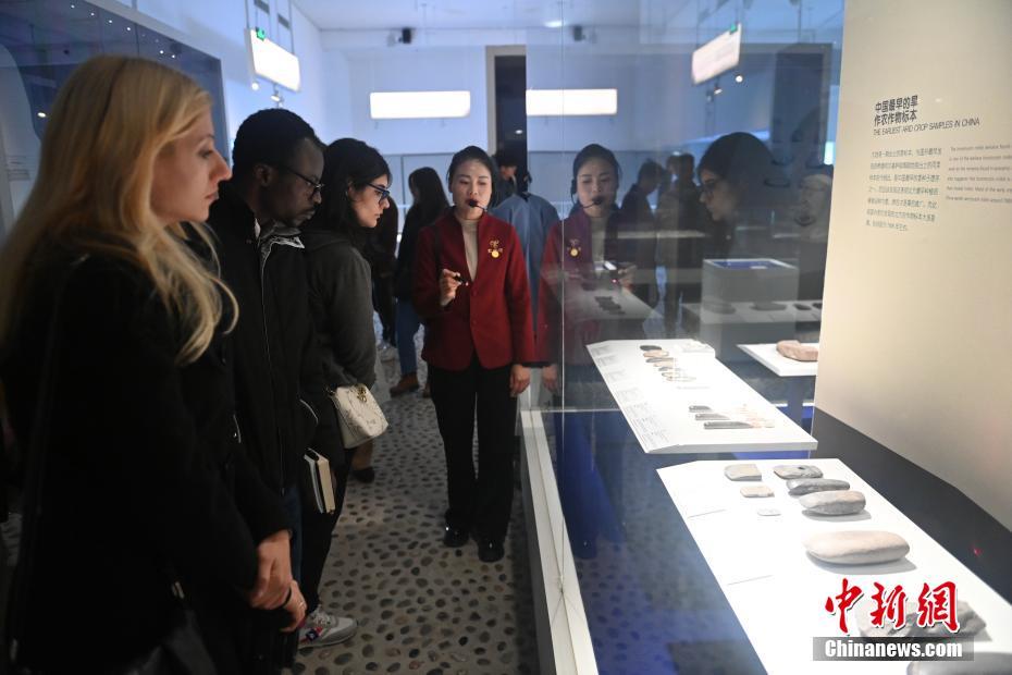 10月22日,2024青年漢學(xué)家研修計(jì)劃甘肅班團(tuán)隊(duì)22個(gè)國(guó)家的青年漢學(xué)家,走進(jìn)甘肅省天水市秦安縣大地灣遺址參觀并進(jìn)行專(zhuān)題研修。大地灣遺址是新石器時(shí)代大型聚落遺址,出土了中國(guó)乃至世界上最早的彩陶文化、最早的文字符號(hào)、種植生產(chǎn)了中國(guó)第一批糧食品種黍、出現(xiàn)了最早的宮殿式建筑、發(fā)明了世界最早的水泥地面、創(chuàng)造了最早的繪畫(huà)作品——F411地畫(huà)。圖為22國(guó)青年漢學(xué)家參觀大地灣博物館。中新社記者 李亞龍 攝