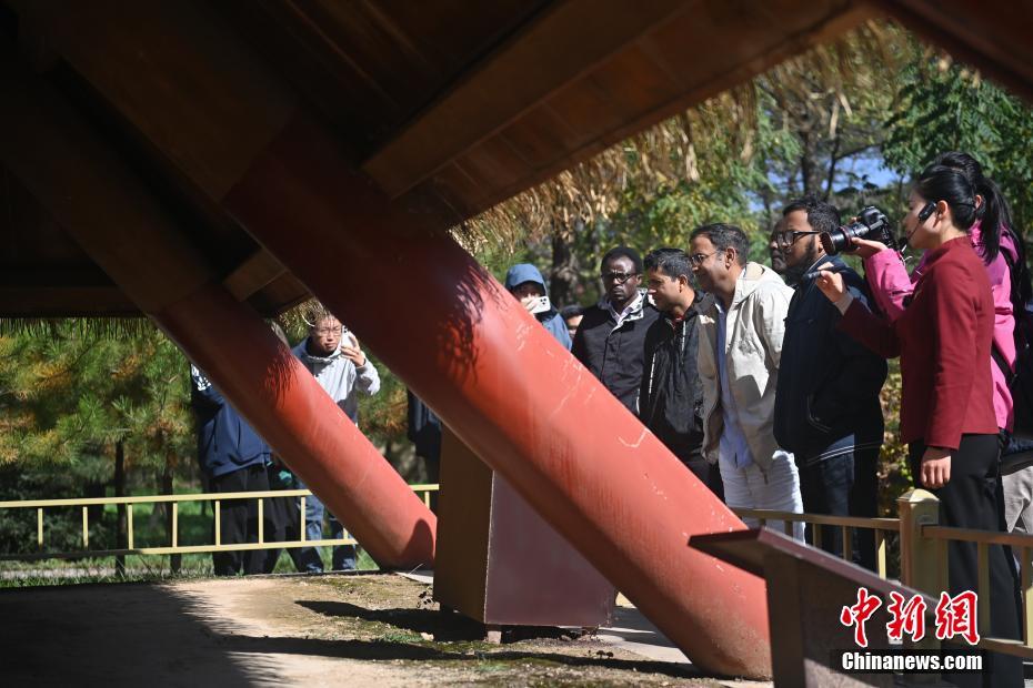 10月22日,2024青年漢學(xué)家研修計(jì)劃甘肅班團(tuán)隊(duì)22個(gè)國(guó)家的青年漢學(xué)家,走進(jìn)甘肅省天水市秦安縣大地灣遺址參觀并進(jìn)行專(zhuān)題研修。大地灣遺址是新石器時(shí)代大型聚落遺址,出土了中國(guó)乃至世界上最早的彩陶文化、最早的文字符號(hào)、種植生產(chǎn)了中國(guó)第一批糧食品種黍、出現(xiàn)了最早的宮殿式建筑、發(fā)明了世界最早的水泥地面、創(chuàng)造了最早的繪畫(huà)作品——F411地畫(huà)。圖為22國(guó)青年漢學(xué)家參觀大地灣遺址。中新社記者 李亞龍 攝