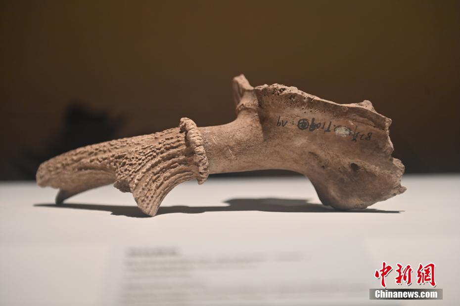 ?。保霸拢玻踩眨玻埃玻辞嗄隄h學(xué)家研修計(jì)劃甘肅班團(tuán)隊(duì)22個(gè)國(guó)家的青年漢學(xué)家,走進(jìn)甘肅省天水市秦安縣大地灣遺址參觀并進(jìn)行專(zhuān)題研修。大地灣遺址是新石器時(shí)代大型聚落遺址,出土了中國(guó)乃至世界上最早的彩陶文化、最早的文字符號(hào)、種植生產(chǎn)了中國(guó)第一批糧食品種黍、出現(xiàn)了最早的宮殿式建筑、發(fā)明了世界最早的水泥地面、創(chuàng)造了最早的繪畫(huà)作品——F411地畫(huà)。圖為大地灣博物館展品梅花鹿角。中新社記者 李亞龍 攝