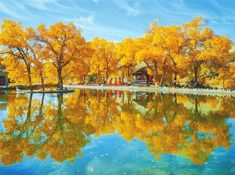 層林盡染的興隆山國(guó)家級(jí)自然保護(hù)區(qū),紅黃綠相間、滿(mǎn)目絢麗、美不勝收;置身在民樂(lè)縣西區(qū)公園,近可抬眼觀(guān)紅葉,遠(yuǎn)可舉目望雪山,天如洗,湖如鏡,令人心曠神怡;以壯麗胡楊林景觀(guān)聞名遐邇的阿克塞縣胡楊峽景區(qū),金黃色的葉片在陽(yáng)光下閃閃發(fā)光,形成一道亮麗的風(fēng)景線(xiàn);在蔚藍(lán)天空的映襯下,秋日的陽(yáng)關(guān)遺址更顯雄渾肅穆;暖陽(yáng)下,旅客乘坐蘭張高鐵出行,欣賞秋天饋贈(zèng)的每一道風(fēng)景……