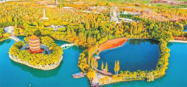 玉門(mén)市玉澤湖公園湖水澄澈,絢麗多彩。新甘肅·甘肅日?qǐng)?bào)記者 馮樂(lè)凱