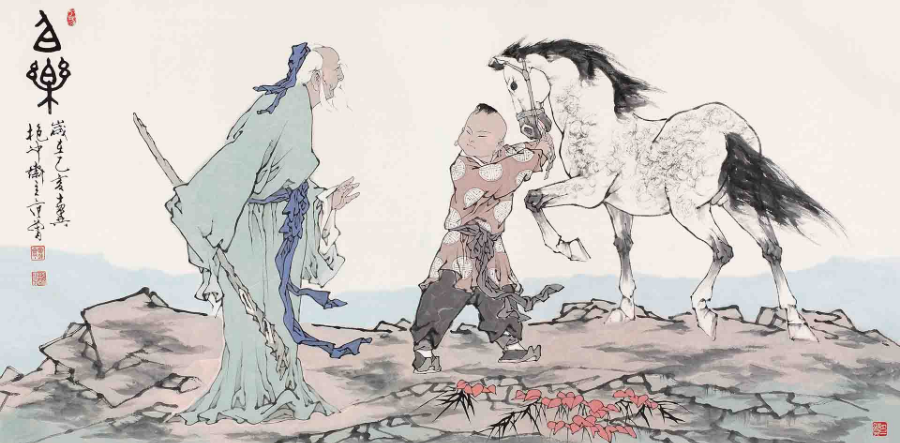 范曾 國(guó)畫作品《伯樂圖》。
