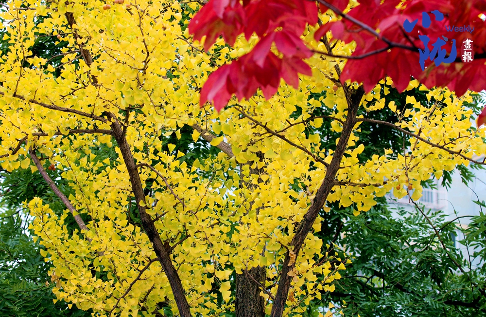 金色、紅色、綠色的秋葉融為一體,繽紛多彩,枝葉隨風(fēng)擺動,發(fā)出簌簌聲響,令人心曠神怡。
