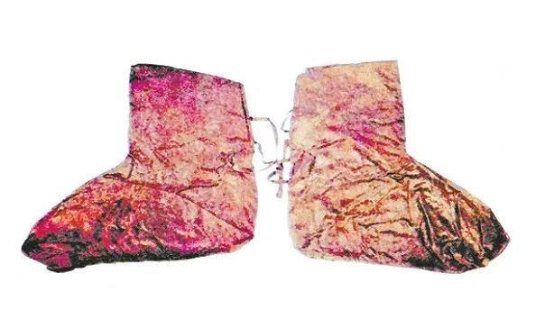 現(xiàn)代考古發(fā)現(xiàn)已證實(shí),早期人們穿的襪子確為皮襪。目前存世較早的一雙襪子是公元前九世紀(jì)的皮氈(zhān)襪,出土于新疆塔里木盆地南緣扎洪魯克古墓中。