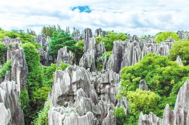 石林以高大、密集的石灰?guī)r溶柱呈森林狀分布而得名,是喀斯特術(shù)語“石林”的發(fā)源地。除典型的劍狀、柱狀、蘑菇狀、塔狀,還有許多不規(guī)則狀的石林,幾乎匯集了世界上所有類似的石林地貌形態(tài),被譽(yù)為“石林喀斯特博物館”。