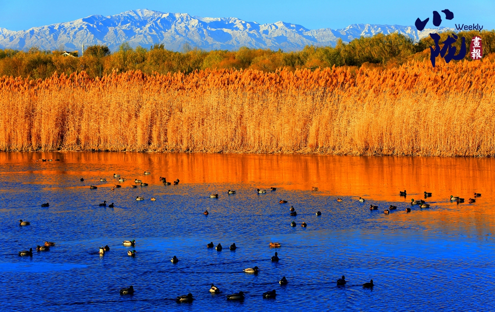 濕地天晴,碧水環(huán)繞,萬(wàn)畝葦蕩一片金黃,仿佛是一幅富有層次感的油畫(huà),令人陶醉。