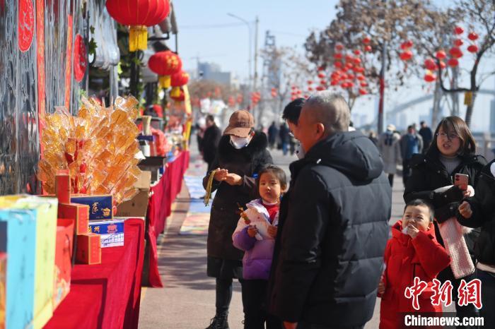 2月8日,甘肅省蘭州市城關(guān)區(qū)“非遺年貨購物月”活動(dòng)現(xiàn)場(chǎng),游人逛街。中新社記者 李亞龍 攝