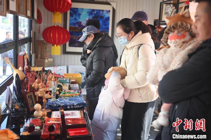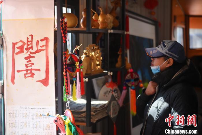 2月8日,甘肅省蘭州市城關(guān)區(qū)“非遺年貨購物月”活動(dòng)現(xiàn)場(chǎng),游人選購非遺文創(chuàng)產(chǎn)品。中新社記者 李亞龍 攝