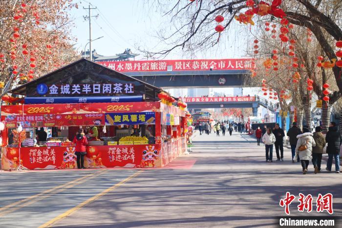 2月8日,甘肅省蘭州市城關(guān)區(qū)“非遺年貨購物月”活動(dòng)現(xiàn)場(chǎng),游人逛街。據(jù)悉,該活動(dòng)是中國文化和旅游部非遺司組織開展的2025年“非遺好物 國潮煥新——四季非遺購物月”活動(dòng)一季度的主題活動(dòng)。通過豐富多樣的非遺促消費(fèi)活動(dòng),發(fā)揮非遺在弘揚(yáng)中華優(yōu)秀傳統(tǒng)文化、培育國貨“潮品”的積極作用。 中新社記者 李亞龍 攝