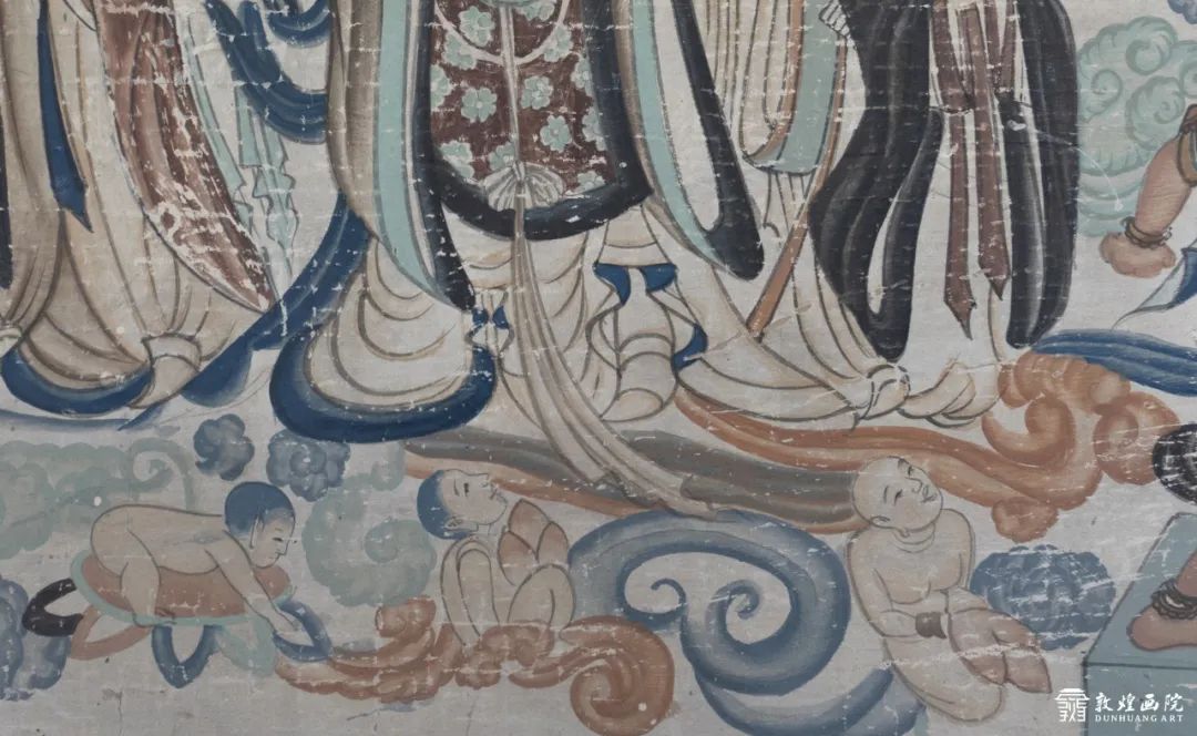 這幅臨摹于榆林窟25窟的化生童子雙手合十,外面蓮花瓣層層盛開,透過透明的花苞可以看到童子即將降生,生動(dòng)可愛,和電影中的情節(jié)遙相呼應(yīng)。