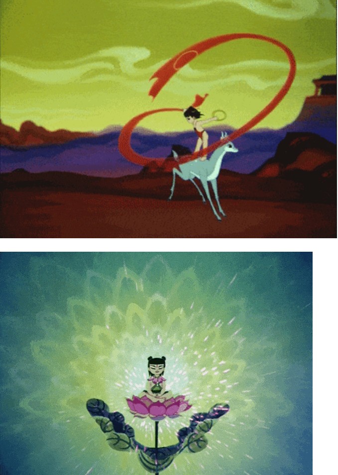 從蓮花中誕生的方式,稱作“化生”,在敦煌壁畫之中是一種相當(dāng)高的境界,比凡人在母親懷孕中誕生的“胎生”,要高出很多很多。哪吒以蓮花重生這一情節(jié)的部分靈感可能也來源于此。