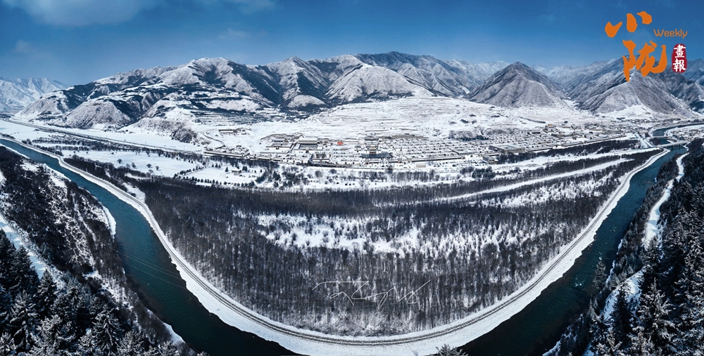 初春的碌曲縣,雪覆蓋了山林,覆蓋了藏寨,山川草場變成了純凈無暇的世界。