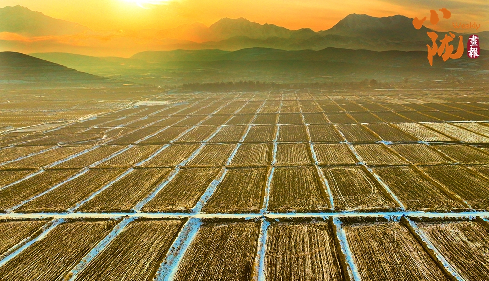祁連山脈被溫柔的落日余暉浸染,遠(yuǎn)處的山峰只露出淡淡的輪廓,變得如水墨畫般朦朧,讓人無(wú)限遐想。