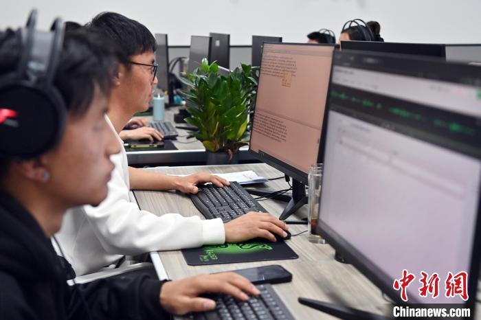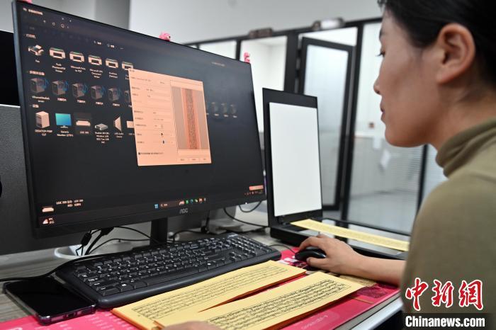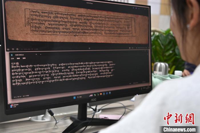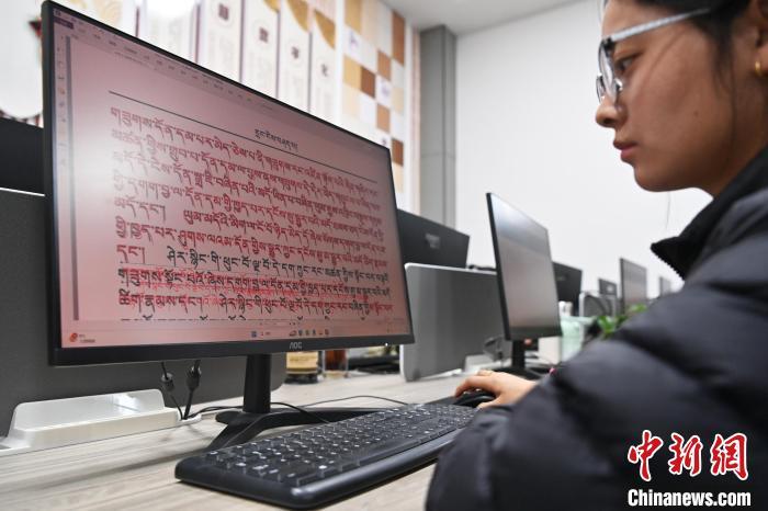 2月27日,在甘肅甘南藏族自治州碌曲縣益西達(dá)吉科技有限公司內(nèi),工作人員正在進(jìn)行藏文古籍?dāng)?shù)字化相關(guān)工作。該公司主要從事民族古籍?dāng)?shù)字化建設(shè)和古籍文獻(xiàn)數(shù)據(jù)庫建設(shè),自2019年以來,承擔(dān)西藏、四川、甘肅等省區(qū)的藏文古籍?dāng)?shù)字化項目。圖為工作人員用該公司研發(fā)的藏文信息處理系統(tǒng)對古籍?dāng)?shù)字化內(nèi)容進(jìn)行檢查。中新社記者 九美旦增 攝