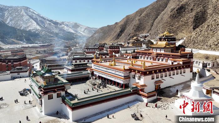 2月28日,航拍“世界藏學(xué)府”拉卜楞寺。(無人機照片)九美旦增 攝