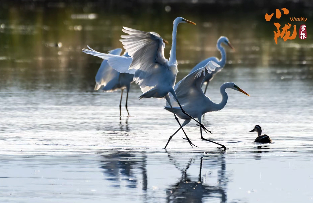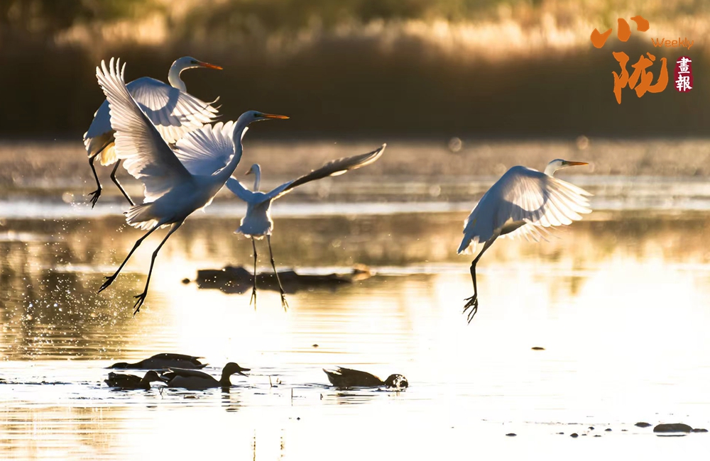 湖中的白鷺翩翩起舞,嬉鬧翻飛,歡快鳴叫,有的停落湖岸,有的游向湖心,有的翻飛空中,為游客帶來(lái)無(wú)盡的歡樂(lè)??带B(niǎo)兒們嬉鬧,仿佛回到童年時(shí)代。自由、自在、生機(jī)無(wú)限,讓每個(gè)人感受到無(wú)窮的生命力量。