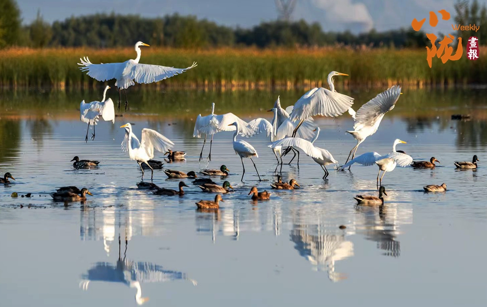 春天,這里萬(wàn)物復(fù)蘇,蘆葦新綠,候鳥(niǎo)歸來(lái),整個(gè)公園充滿(mǎn)生機(jī)。它們依水而居,或在水中游泳和潛水,或在淺水、灘地與岸邊涉行,或在其上空飛行,引得游人們駐足觀看,構(gòu)成一幅人與自然和諧共生的生態(tài)畫(huà)卷。