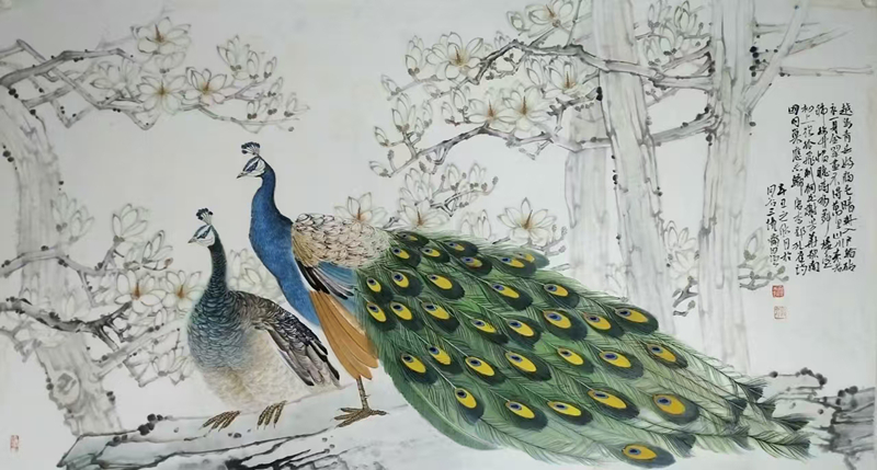 近年來,王自強的創(chuàng)作逐漸從具象走向意象。他嘗試將工筆畫的細膩與隸書的厚重結(jié)合,在《荷塘清韻》等作品中,荷葉的墨色層次與書法的線條韻律相互映襯,形成“書畫同源”的藝術(shù)境界,這種對書法藝術(shù)的探索精神不僅得到業(yè)界認(rèn)可,而且得到了社會的廣泛認(rèn)同。