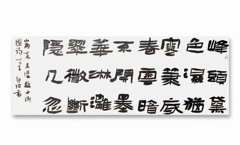 王自強的隸書植根于《西狹頌》的金石氣,又融入個人創(chuàng)新。他的作品《李白古風(fēng)其一》在2021年“中國書法·年展”中脫穎而出,以古樸厚重的筆法、靈動多變的章法,位列全國前51名,成為成縣首位躋身國家級書法大展的藝術(shù)家。2025年,他的隸書作品再次入選全國第五屆隸書作品展,在15214件投稿中脫穎而出,展現(xiàn)出對漢隸藝術(shù)的深刻理解與創(chuàng)新表達。