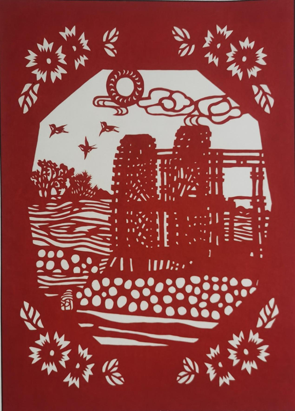 葉長(zhǎng)友剪紙《黃河水車(chē)》《蘭州黃河鐵橋》