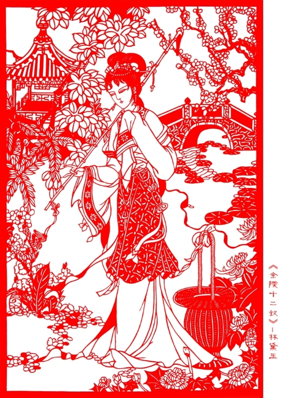 葉長(zhǎng)友剪紙《金陵十二釵》之林黛玉、賈迎春