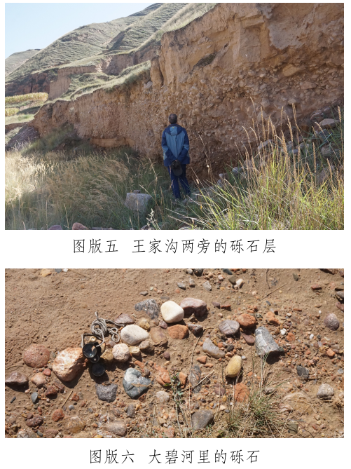 玉石山南麓有一條自東向西流過峽口鎮(zhèn)注入洮河的河——大碧河,《狄道州志》里稱為“打璧河” [12]。玉石山和山下大碧河之間有幾條溝,這些溝是上玉石山的必經(jīng)道路,也是雨水夾帶山上的石頭注入大碧河的通道。在甘肅臨洮馬家窯文化研究院李家功的引領下,我們對大碧河中下游和通往玉石山的三條支溝進行了較系統(tǒng)的調查,調查方法是在訪問當?shù)赜嘘P人員的基礎上,進行野外實地考察。大碧河連接玉石山的支溝主要有三條:第一條大溝是王家溝,是玉石山和峽口鎮(zhèn)之間的通道,大雨過后附近的村民往往會在這條溝里撿到玉石。在王家溝靠近玉石山的茨泉子村,十多戶村民都拿出自己在溝中揀到的十余件山流水玉料(圖版四)供我們觀察、檢測。玉料大小不一,大者長軸約30厘米,多呈次圓狀,均有玉皮,內部質地多細膩,肉眼鑒定和XRF檢測結果表明,玉石主要包括黃綠色(含草花)透閃石玉、透輝透閃石玉及透閃石大理巖,另外還有螢石料。王家溝下游匯入大碧河入口段,發(fā)育三級階地,前人使用大型機械開挖二、三級階地礫石層(圖版五),據(jù)說在其中找到較多玉料,現(xiàn)政府已叫停。在階地礫石層中我們也撿到淺黃綠色透輝透閃石大理巖及半玉化的大理巖礫石,這些礫石是玉石山玉礦的近礦圍巖。王家溝匯入大碧河,因此大碧河中也可以撿到從王家溝滾落的玉石山上的玉石和其它巖石。我們在大碧河峽口鎮(zhèn)段揀到較多直徑約3~5厘米來自玉石山的透閃石大理巖,巖石磨圓度高,成球狀或橢球狀,質地較細膩。據(jù)當?shù)厝酥v,也有人在大碧河峽口鎮(zhèn)段撿到過小塊的玉石;第二條溝是小溝——漆家溝,位于王家溝西面,雖位于玉石山正面,但鮮有聽到在溝里撿到玉石的消息;第三條溝是王家溝東面的石景峽,距離玉石山相對較遠,其溝腦是玉石山的東延部分?!兜业乐葜尽防镙d“打璧河,在州北三十里,源出石井峽,即打璧谷” [13]。這里的“石井峽”可能就是現(xiàn)在所說的“石景峽”,峽中腰有水冒出。但現(xiàn)在的大碧河不源于石景峽,而是源于洮河和渭河的分水嶺。石景峽雖可能是史籍上的打璧谷,且在峽里也撿到了透閃石大理巖礫石,但沒有發(fā)現(xiàn)玉石器和玉料。