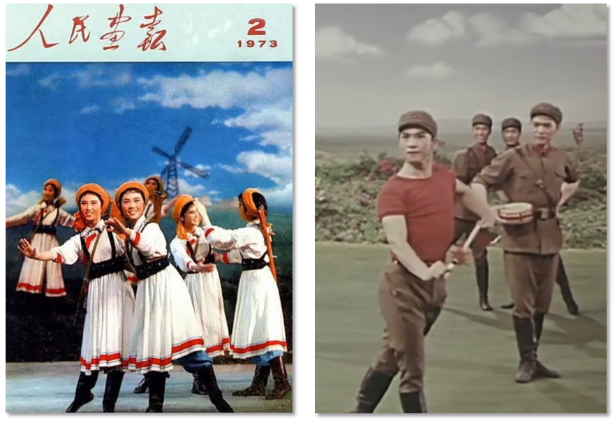 軍旅文藝作品在20世紀(jì)70年代迎來了創(chuàng)作高峰期,涌現(xiàn)了《草原女民兵》《戰(zhàn)馬嘶鳴》等一大批經(jīng)典作品,這與當(dāng)時(shí)特殊的歷史背景密切相關(guān)。“大約從70年代起,中國的舞蹈創(chuàng)作出現(xiàn)了一個(gè)稍稍活躍的狀態(tài)。為了歌頌新生活,也為了活躍舞臺(tái),一些編導(dǎo)被先期‘解凍’,可以有限度地回到工作崗位上來。”人民軍隊(duì)與人民群眾需要通過文藝作品這一宣傳媒介,加強(qiáng)軍民一家親的情感聯(lián)結(jié),以此維護(hù)社會(huì)穩(wěn)定、軍民團(tuán)結(jié)。