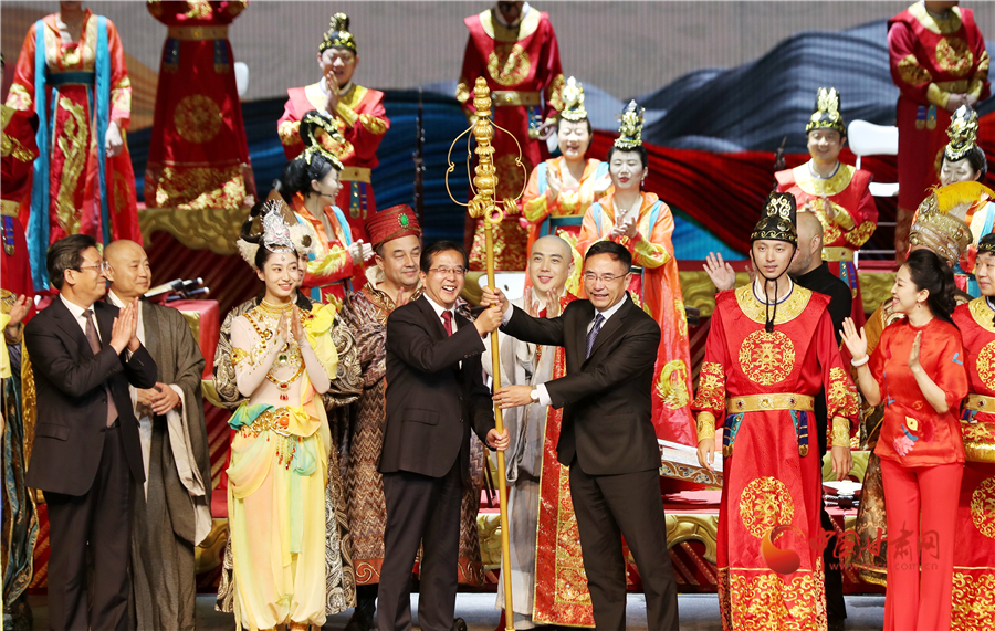 《玄奘西行》作為世界首部大型民族器樂劇,以絲綢之路文化交流使者玄奘的歷史故事為題材,集多民族樂器演奏和戲劇表演為一體,集中展示了敦煌莫高窟壁畫復(fù)原古樂器及古絲綢之路各民族傳統(tǒng)音樂的美妙旋律,體現(xiàn)了當(dāng)代民族音樂的繼承與創(chuàng)新精神,是我國民族器樂舞臺藝術(shù)的高峰之作。演出結(jié)束后,中央民族樂團(tuán)向甘肅省文藝院團(tuán)捐贈(zèng)舞美道具,并指導(dǎo)幫助甘肅省文藝院團(tuán)實(shí)現(xiàn)《玄奘西行》的常態(tài)化駐場演出,為甘肅省再添一張靚麗的文藝名片。
