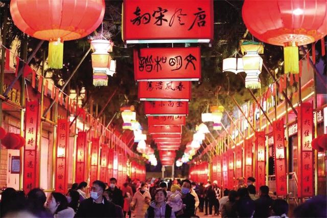 其中,甘南州夏河縣以民間舞與民歌聯(lián)歡的方式迎接春節(jié)的到來,“南木特”藏戲公益性展演活動(dòng)也同步拉開序幕;武都高山戲民間演出活動(dòng)在隴南市武都區(qū)魚龍鎮(zhèn)精彩上演;張掖市民樂縣秦腔展演讓城北民俗文化村的游客們大飽耳福;白銀市先后舉辦了景泰樹皮筆畫作品展、“美在民間”白銀剪紙傳承人作品邀請(qǐng)展;正月十三,定西市安定區(qū)內(nèi)官營(yíng)鎮(zhèn)一年一度的“凈街”民俗活動(dòng)成功舉行,現(xiàn)場(chǎng)熱鬧非凡;金昌市永昌縣“保護(hù)非遺·傳承民俗·慶祝元宵”為主題的“卍”字燈城民俗文化活動(dòng)于元宵佳節(jié)閃亮登場(chǎng);在蘭州老街穿漢服、賞花燈、游園會(huì),沉浸式體驗(yàn)傳統(tǒng)文化成為新民俗。