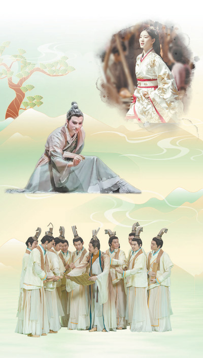 圖片從上至下依次為綜藝節(jié)目《舞千年》劇照、國(guó)風(fēng)舞蹈《紙扇書(shū)生》《孔子》劇照。 制圖:趙偲汝