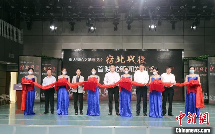中新網(wǎng)宿遷4月23日電 (劉林 錢進(jìn))23日上午,紀(jì)錄片《宿北戰(zhàn)役》首映式新聞發(fā)布會(huì)在北京的中央廣播電視總臺(tái)農(nóng)業(yè)電影電視中心舉行,同時(shí)在江蘇省宿遷市宿豫區(qū)電視臺(tái)設(shè)立分會(huì)場(chǎng)。