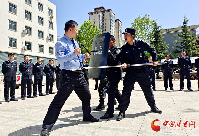 警務實戰(zhàn)教官為民警、輔警講解盾棍叉組合處置技戰(zhàn)術