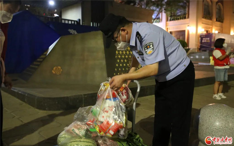 在安寧西路派出所轄區(qū)一處疫情高風(fēng)險(xiǎn)小區(qū),李東輝擔(dān)負(fù)起了入口值守和物資轉(zhuǎn)運(yùn)工作,每天值守至少12小時(shí),實(shí)行“白+黑”24小時(shí)倒班模式。李東輝對(duì)群眾訂購(gòu)的物資逐一進(jìn)行核對(duì)登記,保證種類數(shù)量齊全,隨后進(jìn)行消殺,再按照訂單先后順序轉(zhuǎn)運(yùn)至小區(qū)門口。物資運(yùn)送時(shí)時(shí)都有,李東輝總是從白天忙到深夜。
