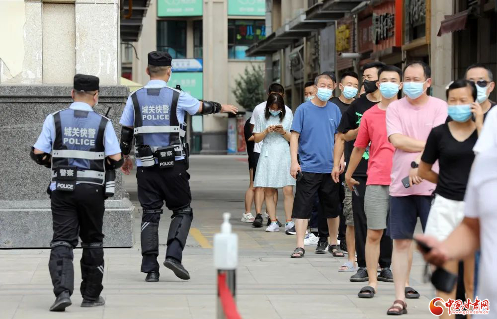 城關(guān)公安快警發(fā)揮機(jī)動(dòng)優(yōu)勢(shì),在轄區(qū)各核酸采集點(diǎn)開展秩序維護(hù)安全守護(hù)等工作。楊 釗/攝