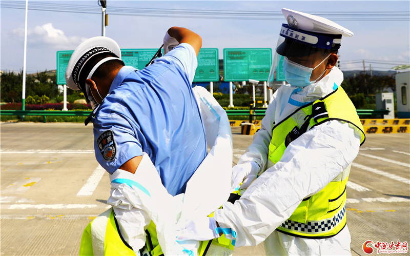 連日來,隴南市禮縣持續(xù)出現(xiàn)高溫天氣,禮縣公安局交警大隊執(zhí)勤民警身著防護服,堅守在道路一線戰(zhàn)高溫,斗酷暑,一手抓常態(tài)化疫情防控,一手抓道路交通安全。