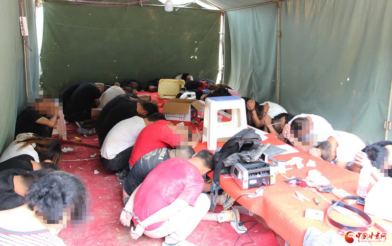 “各小組注意,目標(biāo)正向后山方向逃竄,立即實施抓捕!”8月10日2時許,在蘭州市永登縣樹屏鎮(zhèn)境內(nèi)一處山坳,隨著對講機內(nèi)傳來的指令,20余名公安民輔警全副武裝,猶如猛虎下山般撲向正四處逃竄的涉賭犯罪嫌疑人。