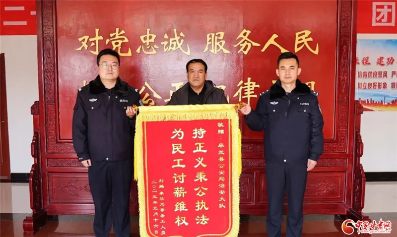 中國甘肅網(wǎng)2月3日訊(本網(wǎng)記者 程?。?月2日,劉先生代表20余名工友將一面印有“持正義秉公執(zhí)法,為民工討薪維權”的鮮紅錦旗送到了蘭州市皋蘭縣公安局,以此表達對縣局治安管理大隊民警幫其辛苦討要工資的感謝。