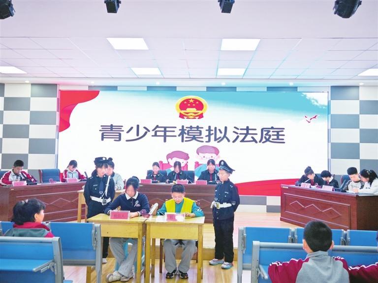 首先,在李青源律師的悉心指導(dǎo)和同學(xué)們的踴躍參與下,經(jīng)過(guò)前期的認(rèn)真彩排,同學(xué)們以模擬法庭的形式現(xiàn)場(chǎng)模擬了一起因校園欺凌導(dǎo)致的刑事訴訟案件。參與庭審活動(dòng)的學(xué)生們沉浸式、體驗(yàn)式、互動(dòng)式參與其中,有序扮演著審判長(zhǎng)、公訴人、辯護(hù)人等角色。活動(dòng)也讓在場(chǎng)的其他同學(xué)認(rèn)識(shí)學(xué)習(xí)了法庭審判的全過(guò)程,身臨其境感受了校園欺凌會(huì)產(chǎn)生的嚴(yán)重后果,以及法律的威嚴(yán),引導(dǎo)青少年學(xué)會(huì)用法律保護(hù)自己。